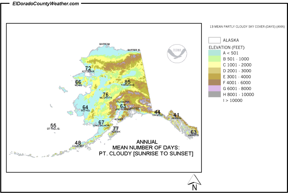 Alaska Yearly Annual And Monthly Mean Number Of Partly Cloudy Days Sunrise To Sunset